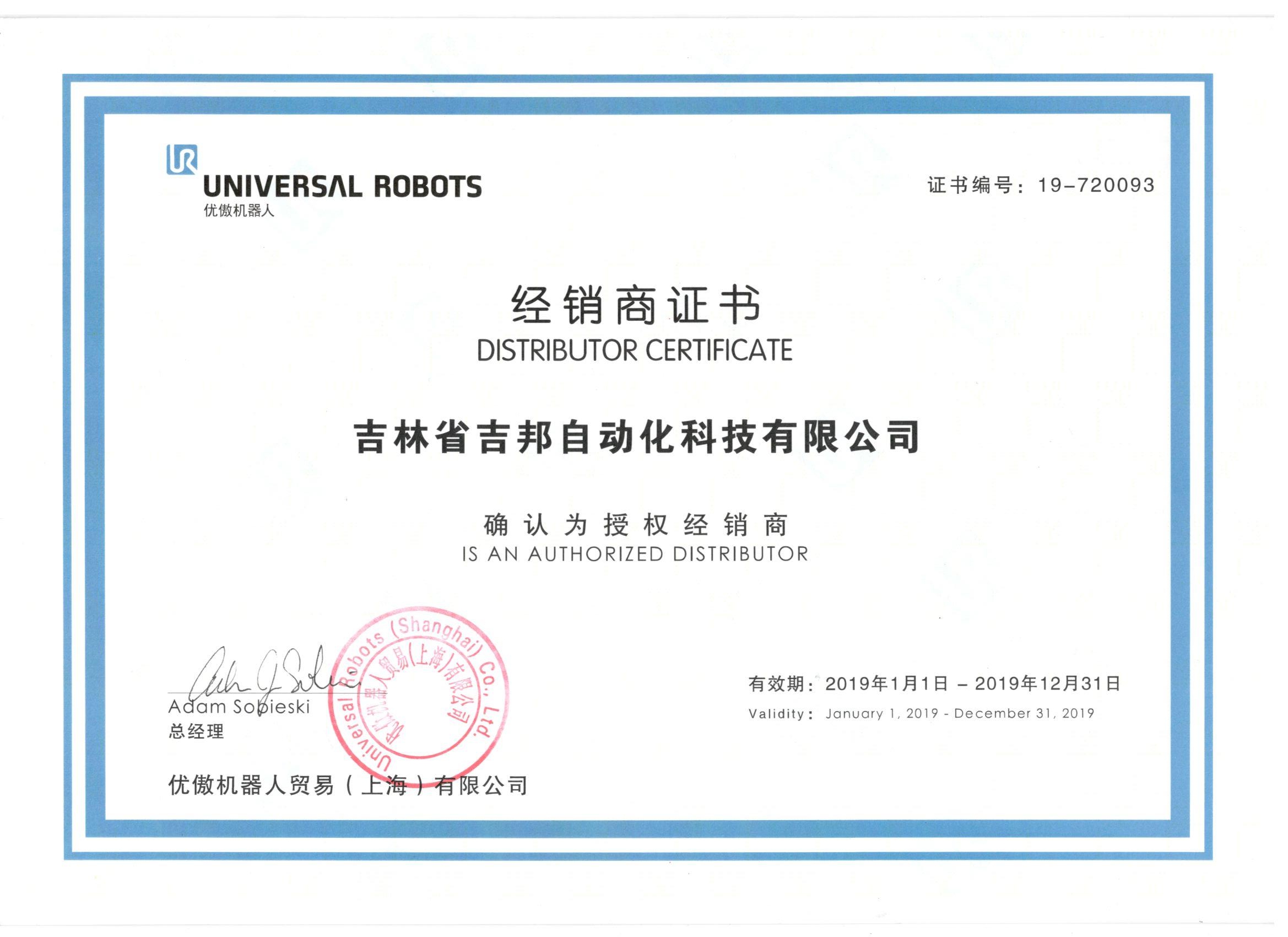 UR機(jī)器人經(jīng)銷商證書(shū)